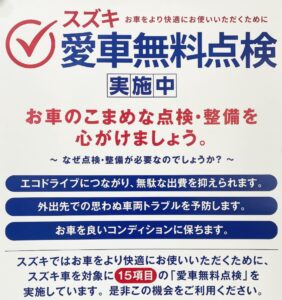 🚗【スズキ愛車無料点検】のお知らせです📢 🗓️期間: 9/1〜11/30 @はざま自動車🕺🏻芦田愛菜ちゃんのCMでお馴染み✨ 今年もやってきました【スズキ愛車無料点検】🎶 スズキのお店はもちろんですが、 ▶️「はざま自動車」でも点検対象です👨🔧👍 🙆愛車無料点検では、お乗りのスズキ車で 15項目の点検を無料で受けられます🔍 ご来店のお客様にはちょっとした🎁も用意しています!! ぜひこの機会にご来店下さい🚗💨